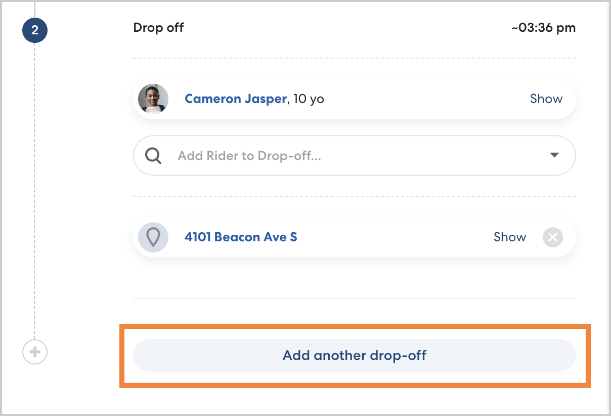- Below the existing stop, click Add another pickup/ drop-off, as applicable.