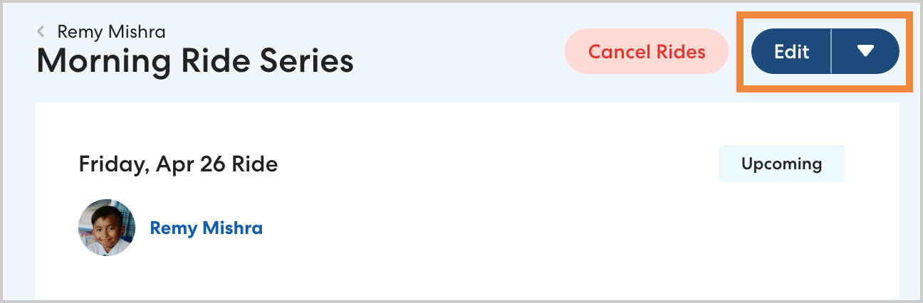 You can edit the pickup or drop-off Locations for a ride or ride series until two hours before the next ride is scheduled to start. Keep in mind that if a CareDriver has already claimed the ride, they will be notified of the change and may unclaim it if they are unable to drive the new route. Because of this, we recommend making changes as far in advance as possible.