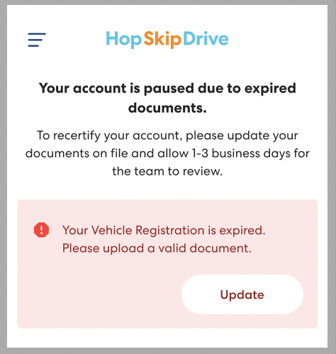 If your CareDriver account is paused, we've made the process of getting recertified clearer and easier to navigate. See the reason you were paused right in the app and tap the link to begin taking any required steps.