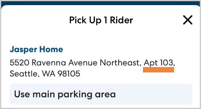 Previously, information like apartment and suite numbers was included in rider or location notes. With this update, you'll see that information displayed as part of the main address to help you find the right location quickly and accurately.