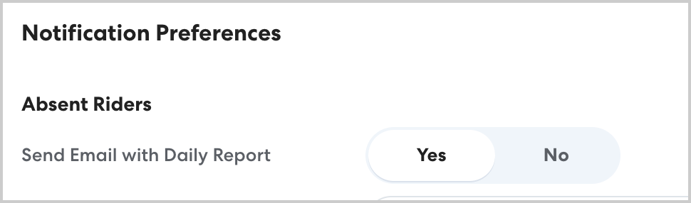 - In Notification Preferences, under Absent Riders, toggle Send Email with Daily Report to Yes.
