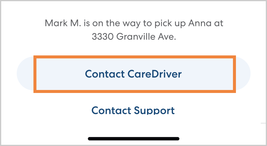 | Note: For safety reasons, CareDrivers may not respond to calls or texts while driving. Please be patient. |