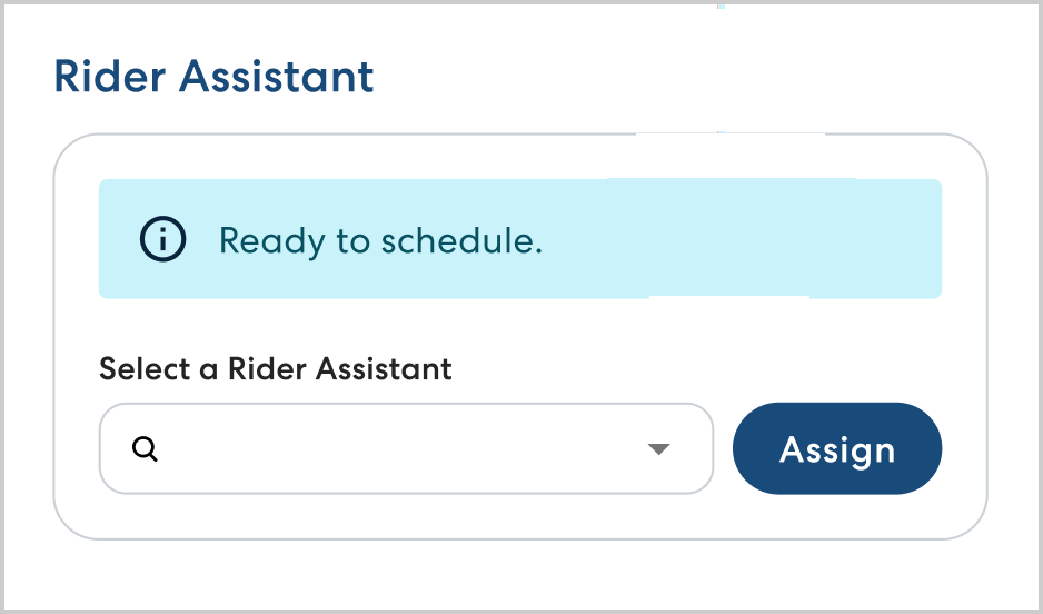 - In Select a Rider Assistant begin typing the name of the Rider Assistant you want to assign, then select them from the list. Click Assign.