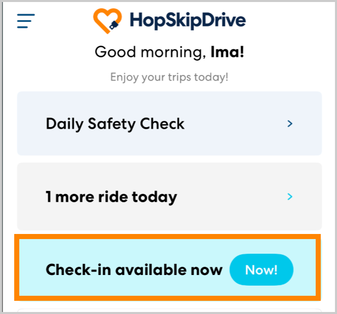 You are now checked in for the ride. You can close the app until it is time to leave.