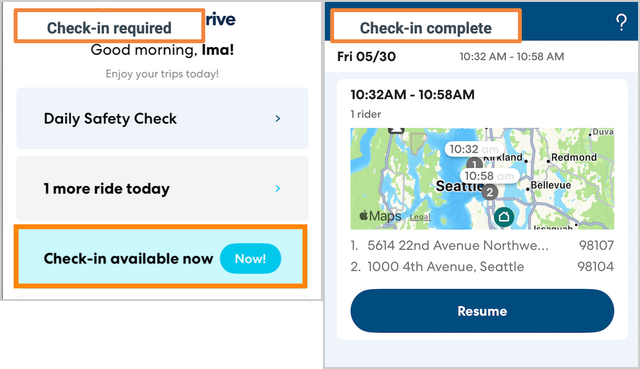 Follow the steps below to check in for a ride.