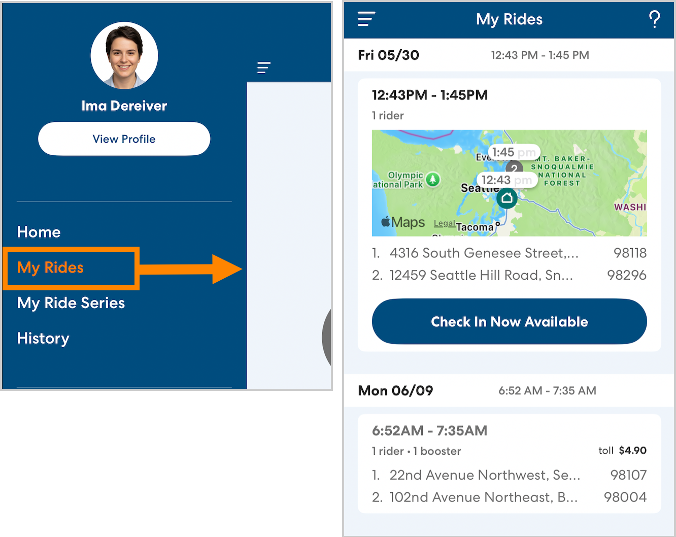 You can see upcoming rides assigned to you on the My Rides page of the app.