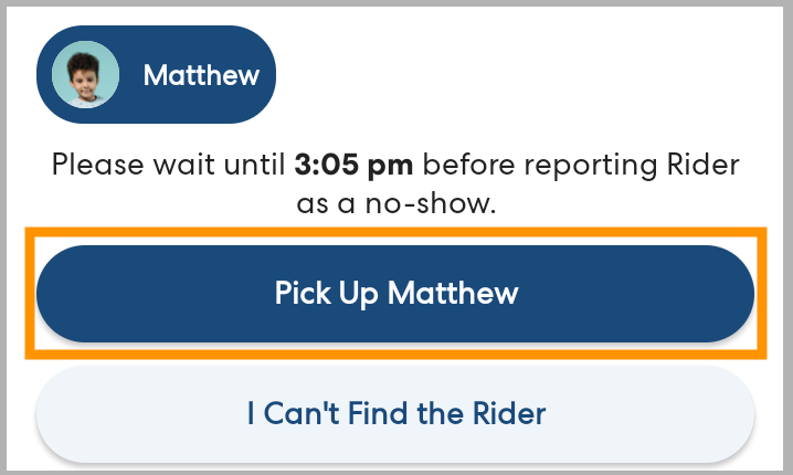 At each pickup location, you may be picking up one or more riders. For each rider, follow the steps in the app to confirm the rider's identity and record the successful pickup.