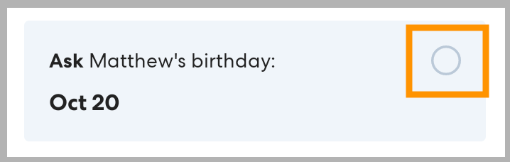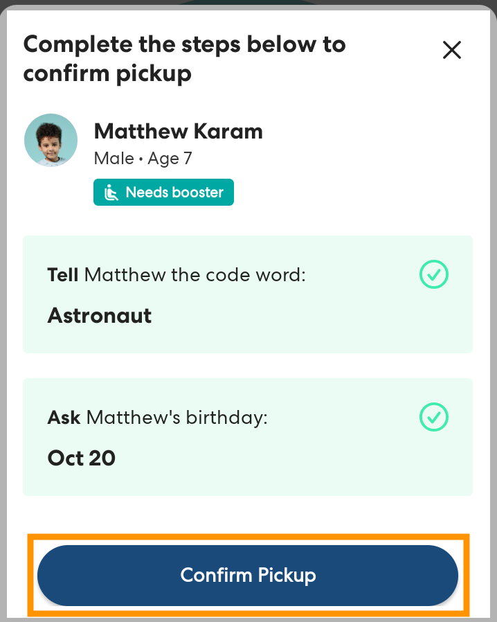 Ask the rider for their birthday. If the rider's answer matches what is listed in the app, tap the circle to check off Ask [rider's] birthday.