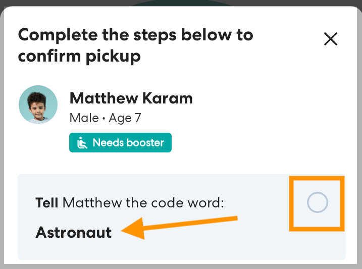 Tell the rider the code word. By telling the rider the code word you are confirming to the rider that you are the correct driver. If the rider confirms that the secret word you gave them is correct, tap the circle to check Tell [rider] the code word.